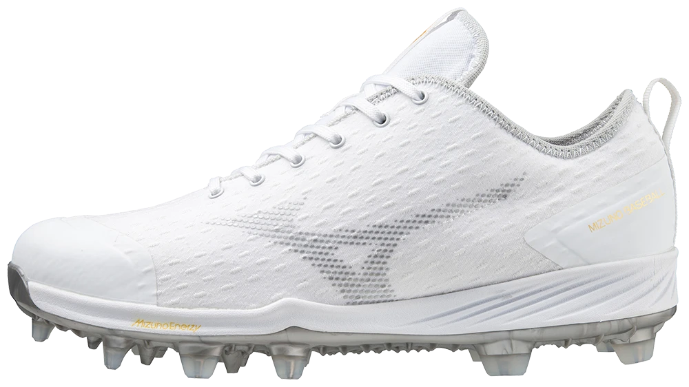 Mizuno’s newest introduction to the Dominant Family, the Mizuno Dominant 4 TPU Men’s Molded Baseball Cleat features an innovative woven knit upper, giving the cleat a sleek design and a natural fit for all foot types. Translucent I-Shaped TPU studs provide a unique accent that also increases traction on multiple surfaces. The rib construction of the new Mizuno C-Flex Outsole is a combination of enhanced stability, flexibility, and traction, while reducing stud pressure, providing superior comfort during long games.