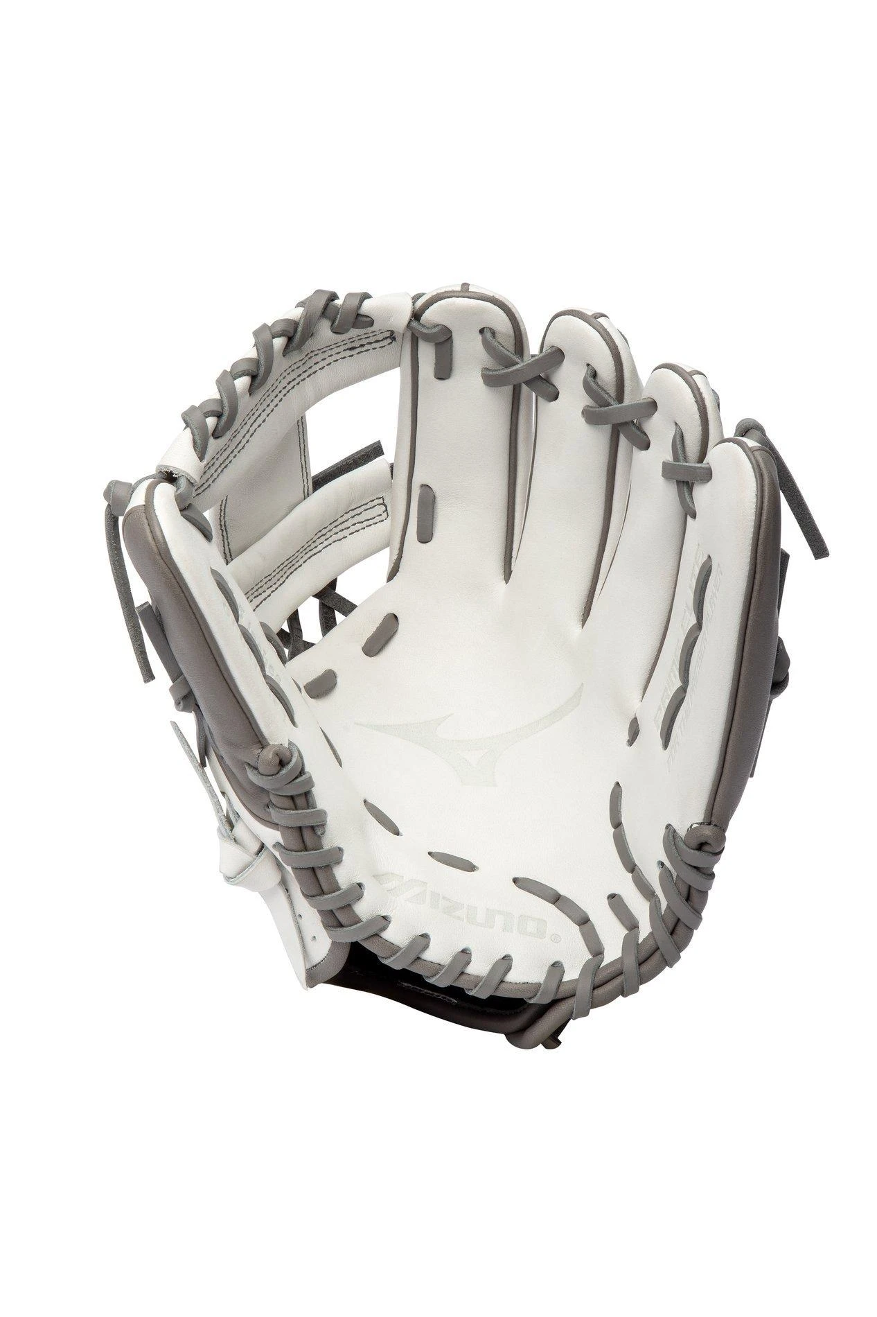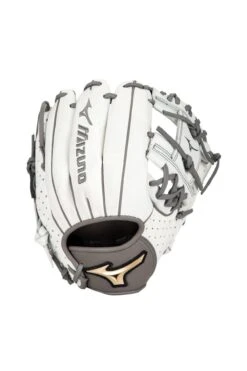 The new Mizuno Prime Elite 11.5″ Infield Glove series is crafted with soft, smooth, white and grey colored leather that is durable with a premium feel. Featuring an UltraSoft Pro Palm Liner for a soft feel and finish. A perforated thumb and pinky panel design reduces weight and increases breathability. Created with Finger Core technology, which is a new finger stall shape that helps improve flexibility and control when making a tough play, while also providing a more comfortable option for players who prefer to shift their ring finger to the pinky slot. Designed with Fastpitch patterns to make Prime Elite an excellent glove choice for serious players wanting to compete at their highest level on the field.