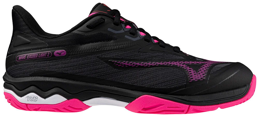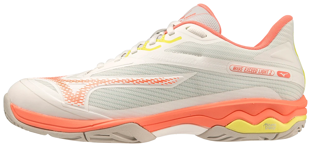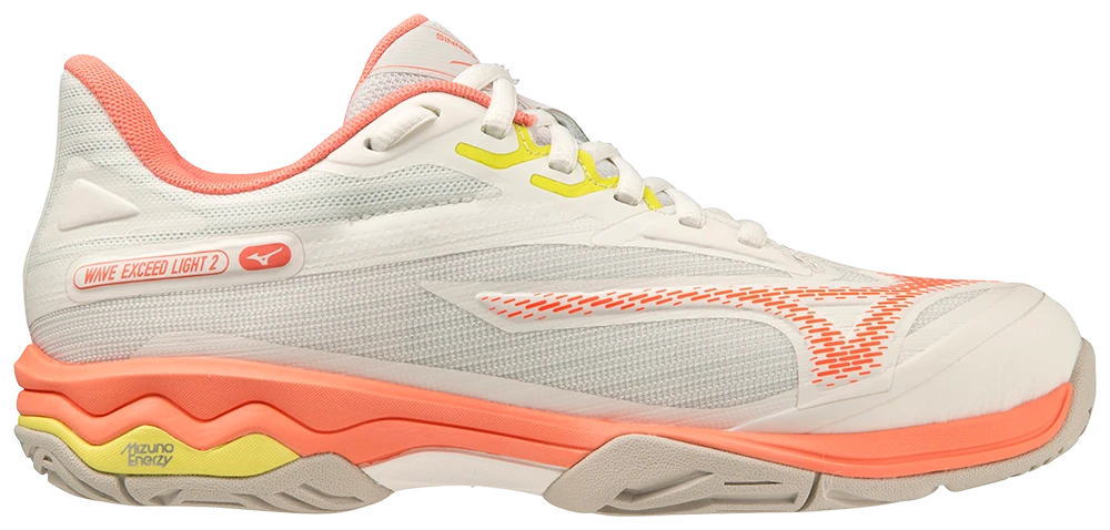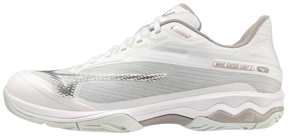 Designed for the active tennis or pickleball player, the WAVE EXCEED LIGHT 2 AC continues its tradition of offering the utmost in lightweight, cushioned comfort. No longer does a player need to choose between comfort and weight, as the Wave Exceed Light 2 is one of the lightest and most comfortable shoes on the market. Featuring MIZUNO ENERZY Foam and a unique MIZUNO FOAM WAVE plate in the midsole, the Wave Exceed Light 2 combines elevated energy return with a plush, yet supportive cushioning experience. A comfort last with a spacious width, along with an engineered mesh upper, combine to provide players of all levels with a premium level of comfort, flexibility and feel.
